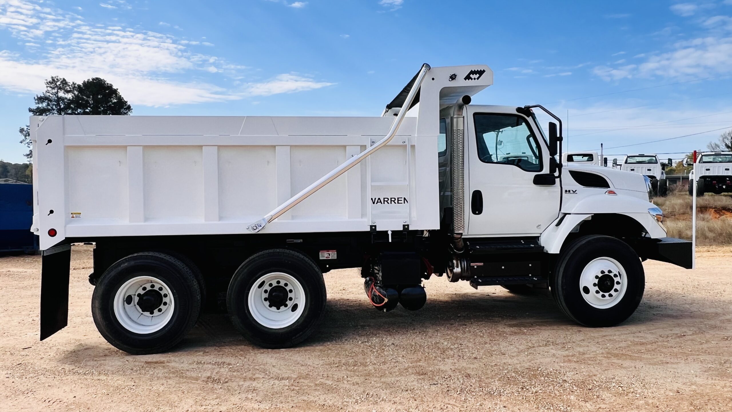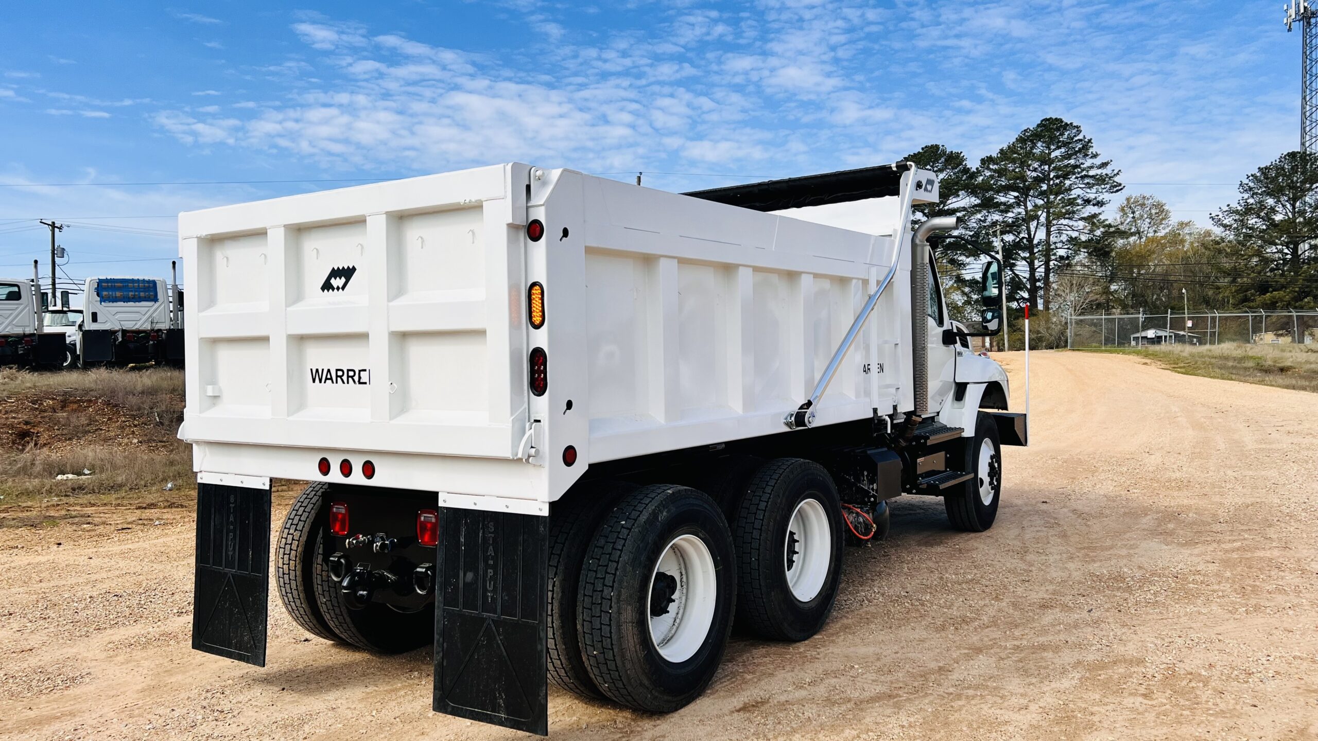 The 13.5 ft dump body includes 36-inch sides and a 44-inch tailgate, reinforced with 2×8 metal boards for added strength. A cab-matched paint job ensures a cohesive, professional appearance. Additional upgrades include a passenger-side bolt-on ladder, a retractable underbody ladder, and tie-down hooks spaced every 16 inches for secure load management.